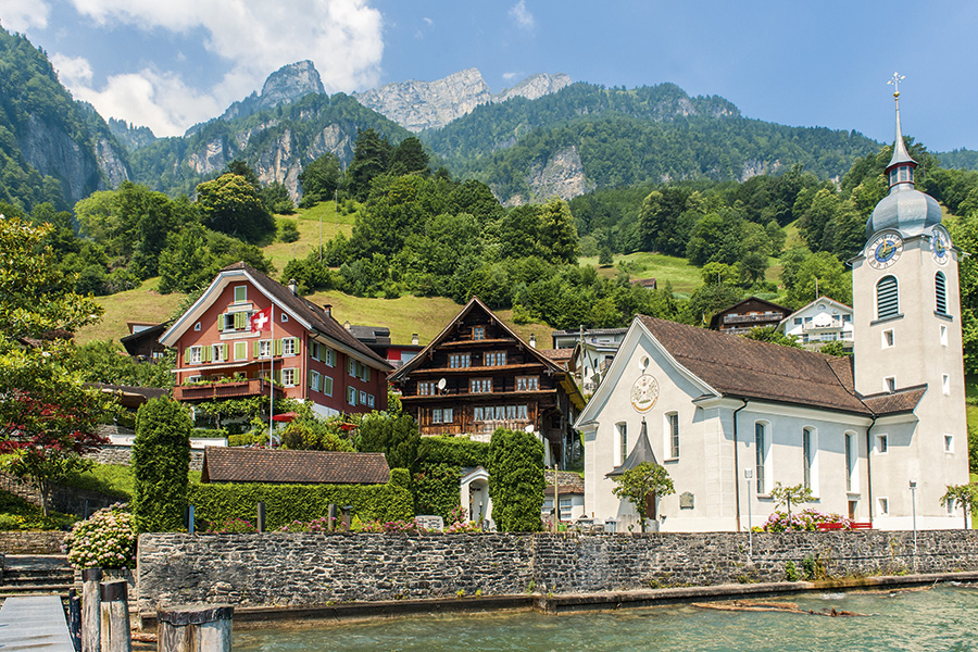 Das wunderschöne Bauen am Urnersee ist ein kleines Dorf im Kanton Uri. Seine geschützte Lage, umgeben von den Höhen der angrenzenden Nidwaldner Berger und er grünblauen Seebucht versprühen ein unverwechselbares Charisma. Man wir das Gefühl, der Süden beginnt hinter der nächsten Ecke, nie ganz los. Auf wunderbare Weise vermischt sich hier mediterrane Vegetation mit den klaren Linien des Nordens.
